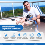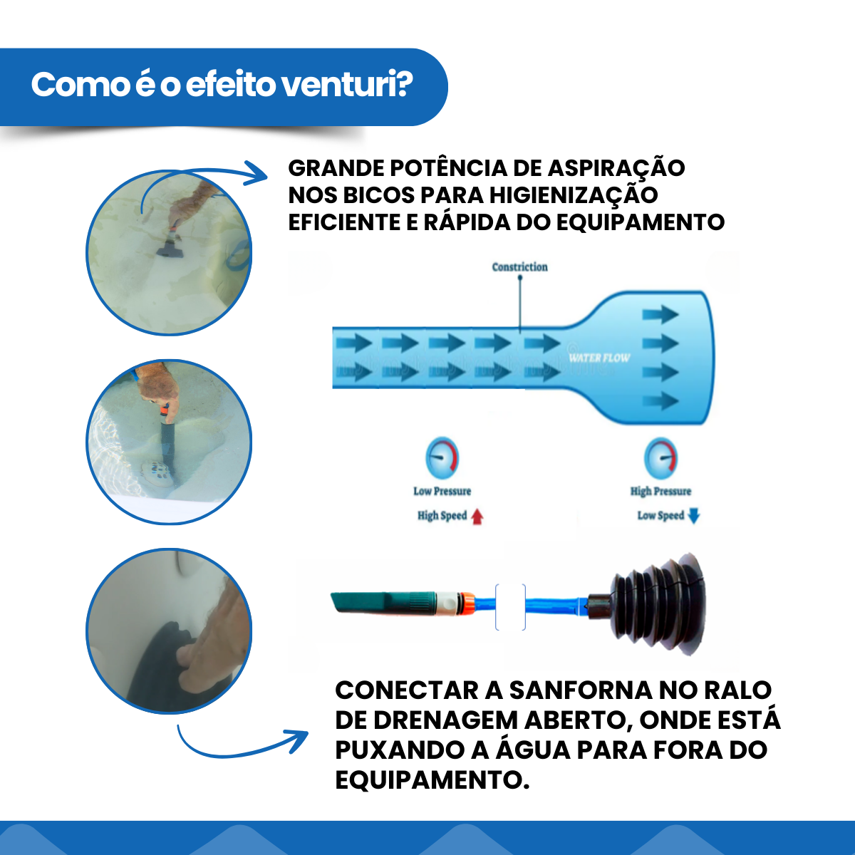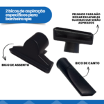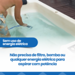 Graças à potente força de sucção e a existência de dois bicos, inclusive um especificamente para alcançar sujeiras que podem estar alojados em pequenos recessos ou fendas, o aspirador aquático manual da Clean Spa promove uma limpeza completa, eliminando eficientemente sujeiras das laterais, assentos e fundo do equipamento em poucos minutos.