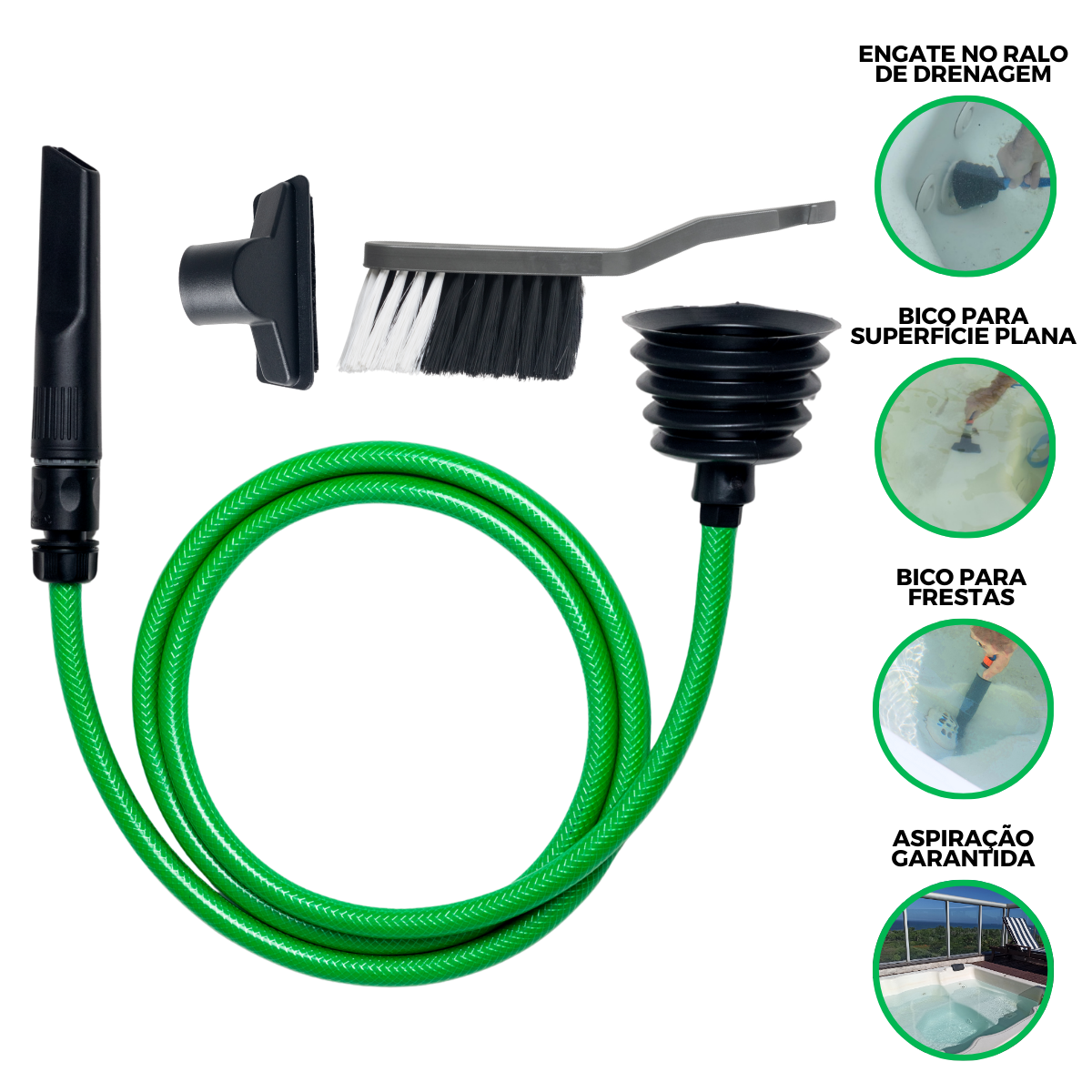 Fácil de Usar: Seu design intuitivo permite uma operação simples e direta. Basta conectar o engate sanfona ao ralo de drenagem para ativar a sucção e iniciar a limpeza.