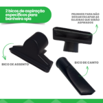 Limpeza Rápida e Completa: Graças à sua sucção potente e aos dois bicos inclusos, ele remove eficientemente as sujeiras do fundo, laterais e assentos do equipamento em poucos minutos.