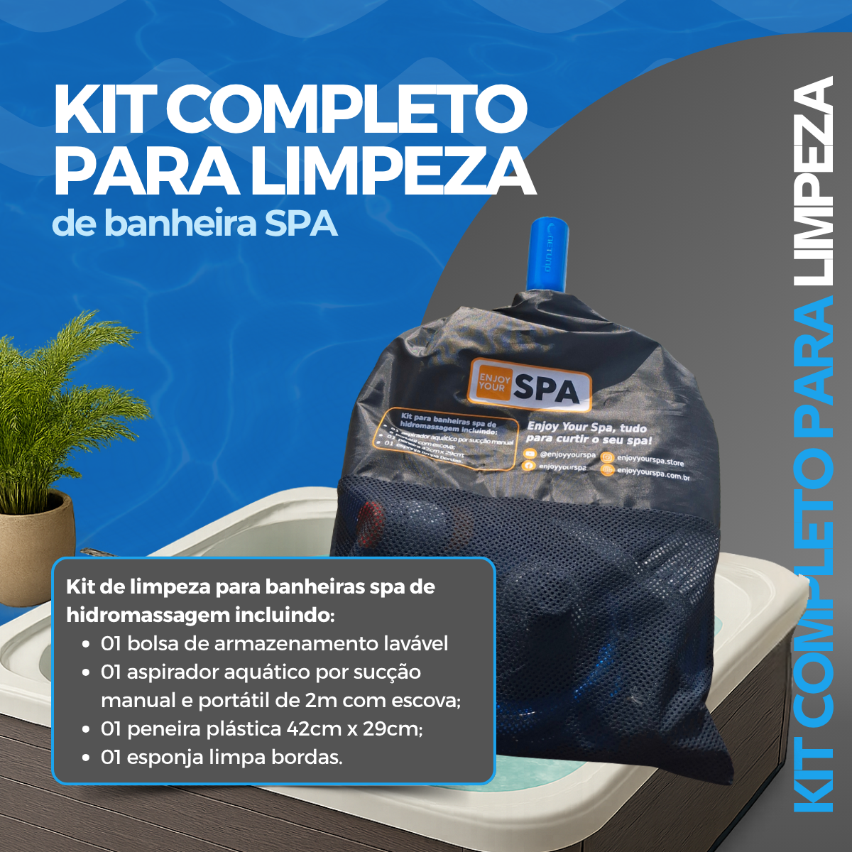 Diferente dos kits de piscina adaptados que não funcionam para spas, este é o primeiro Kit Completo para limpeza criado exclusivamente para banheiras spa, garantindo praticidade, eficiência e uma experiência premium de uso.