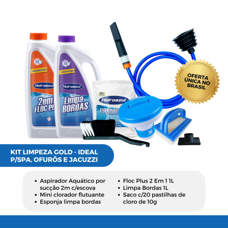 PRODUTOS INCLUIDOS NO KIT GOLD IDEAL PARA A MANUTENÇÃO DE BANHEIRAS SPAS, OFURÔS E JACUZZIS: